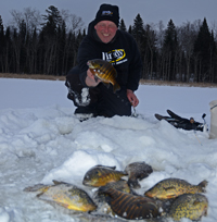(2-19) On an Ely Area Lake, my long lost pal and hopefully soon to return, Matt Mattson called me on the phone Saturday morning. He said, "we have one limit on the ice and still catching some, but it's slowing down a little". Crappies, that's what they were catching and it sounded like a really nice mix of fish. Matt, like most anglers didn't want to get into the fine details, but if you're a Crappie fisherman, you know the drill. Smaller area lakes with decent panfish populations are accessible all over the Northland right now and if you find them, the fish are biting.
