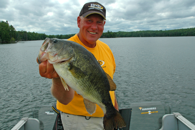 We were putting the boat on the trailer with the intention of heading for Bowstring Lake when I thought of a tiny, 200 acre lake that just might have some Bass. We shifted gears and headed that way with our fingers crossed. Along the way, I checked in with a friend who'd been there recently and got a heads up about a good starting spot. Hey! there is such a thing as good luck!