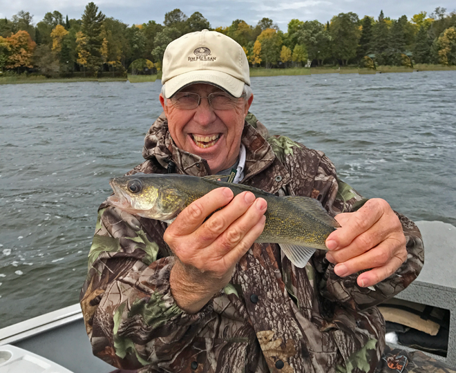 This isn’t the first time that Pink has been singled out as a special color in these reports and it’s not the first time that it’s happened during the fall season. Maybe there’s a correlation between fall feeding patterns and the color Pink, or maybe it’s just coincidence. Either way, by the time the thunderstorms cut our trip short, Annalee and her Pink Live Bait Jig had produced 75% of the Walleyes that we bagged.